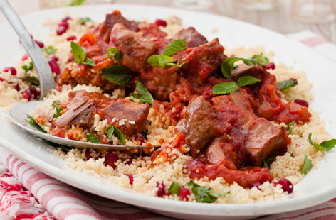 Tagine of lamb, couscous, preserved lemon and harissa.