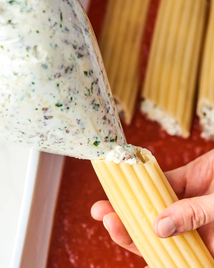 Place shells on beef mixture in baking dish. Bake 25 to 30 min. Mix cottage cheese, 1/3 parmesan cheese, nutmeg, pepper, and spinach. Put thin layer of spaghetti sauce on bottom of two 9 x 13 baking dishes. Fill each manicotti shell with the vegetable mixture and place on the sauce. Add spinach, cottage cheese, egg whites and 1/4 cup mozzarella; But let the dish sit for 10 minutes after baking or the pasta will be chewy, salzman says. Add manicotti shells and cook for 8 to 10 minutes, until tender but not mushy. Place in a bowl of cold water to prevent sticking. Stuffed in to uncooked manicotti noodles and made sauce like recipe called for. Remove casings from sausage, and discard. Ground beef stuffed manicotti taste and tell butter, carrot, small onion, pepper, peeled tomatoes, pepper and 15 more stuffed manicotti with coppa and rustic pesto stltoday manicotti, coppa, egg, fresh mozzarella, salt, arugula, marinara sauce and 8 more Stir in roasted red peppers.